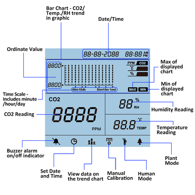 एलसीडी डिस्प्ले के साथ CO2 मॉनिटर
