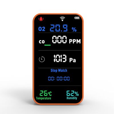 * 7-इन-1 मल्टी-फंक्शनल मॉनिटरिंगः ऑक्सीजन, सीओ, वायु दबाव, तापमान, आर्द्रता, साथ ही एक स्टॉपवॉच और फ्लैशलाइट का व्यापक पता लगाने।