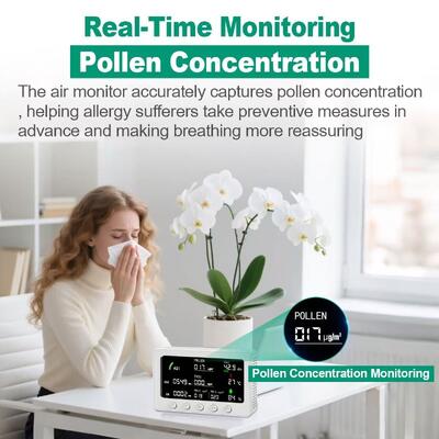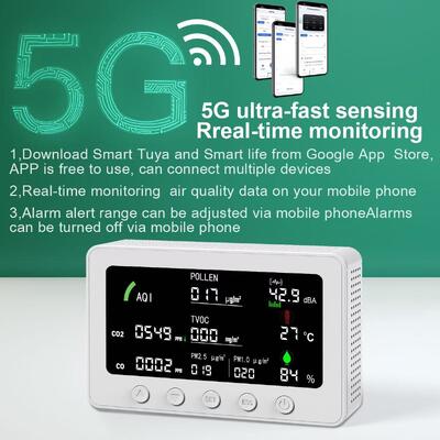 | नियत उपयोग | पता लगाएं और डिजिटल रूप से वास्तविक समय में निगरानी करेंः पराग, CO2, CO, VOC, PM2.5, PM1.0, तापमान और आर्द्रता |