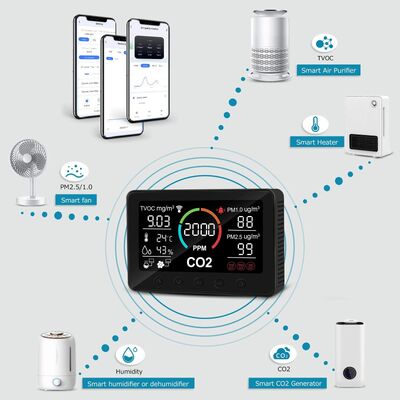 प्रौद्योगिकी-समझदार घरों के लिए स्मार्ट वायु गुणवत्ता मॉनिटर ऐप-नियंत्रित और बहु-सेंसर